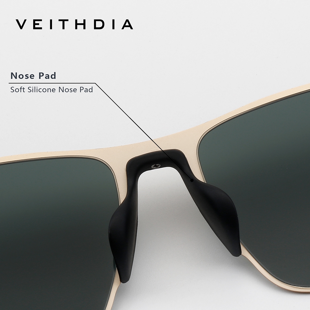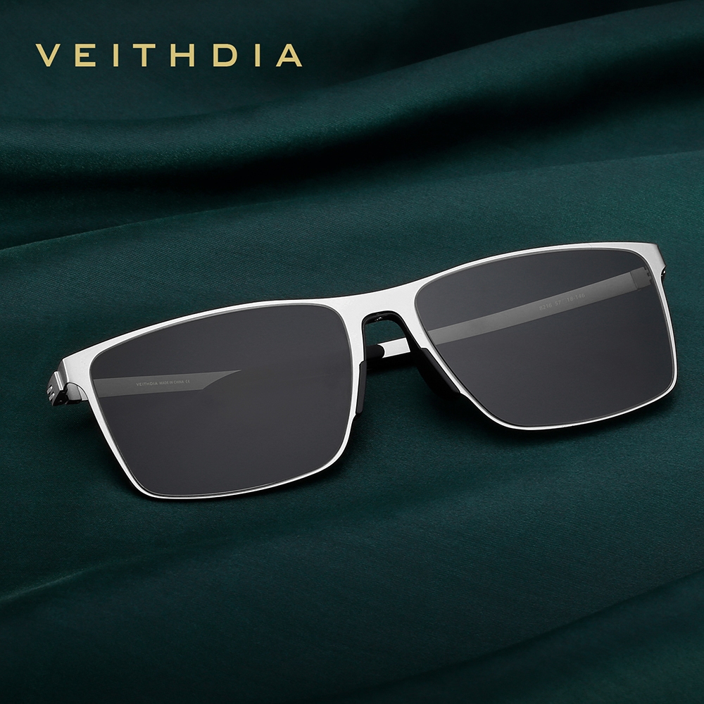 VEITHDIA Kacamata hitam pria polarized anti UV dengan bingkai persegi dari stainless steel dan lensa dari nylon HD model V8212