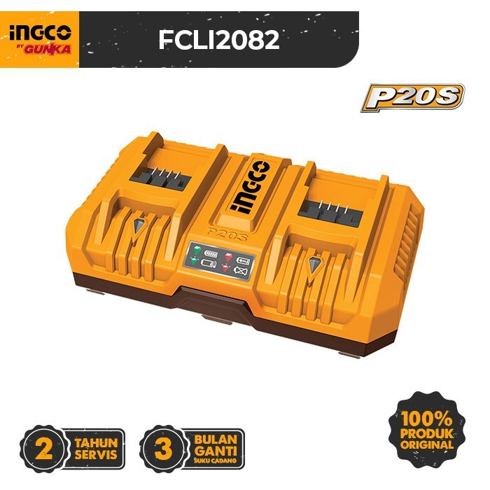 P20S Dual Rapid Charger (4A+4A) INGCO FCLI2082 Cas Fast Charge 2-Slot Baterai Output Max 8A Li-Ion Cordless Tools ex FCLI2024