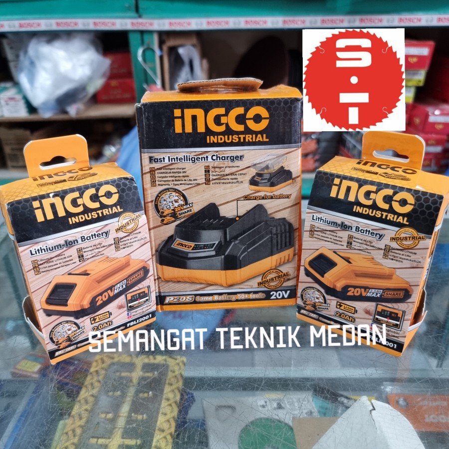 PAKET FCLI2001 FAST CHARGER + 2pcs BATERAI BATTERY 2AH FBLI2001 INGCO