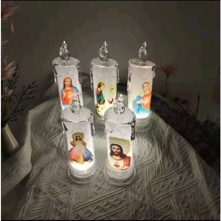 Lilin LED Elektrik 15cm Tears Candle Christmas Lamp Motif Tuhan Yesus Bunda Maria Dekorasi Hiasan Natal