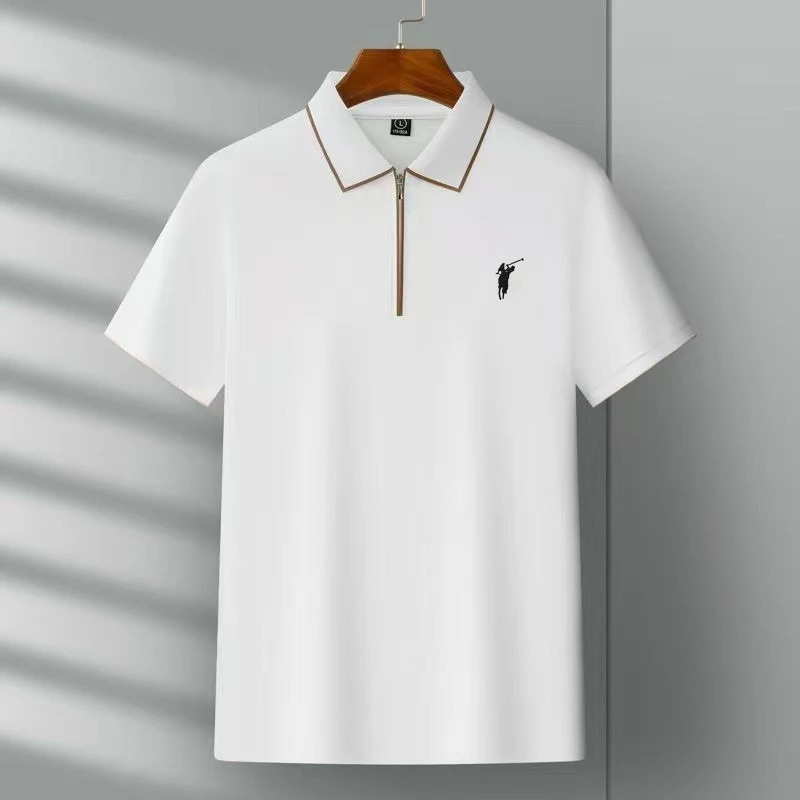 Dinn Polo Shirt Pria Distro Kerah Casual Resleting Setengah Lengan Pendek Premium Original Korean Style Slim Fit Putih