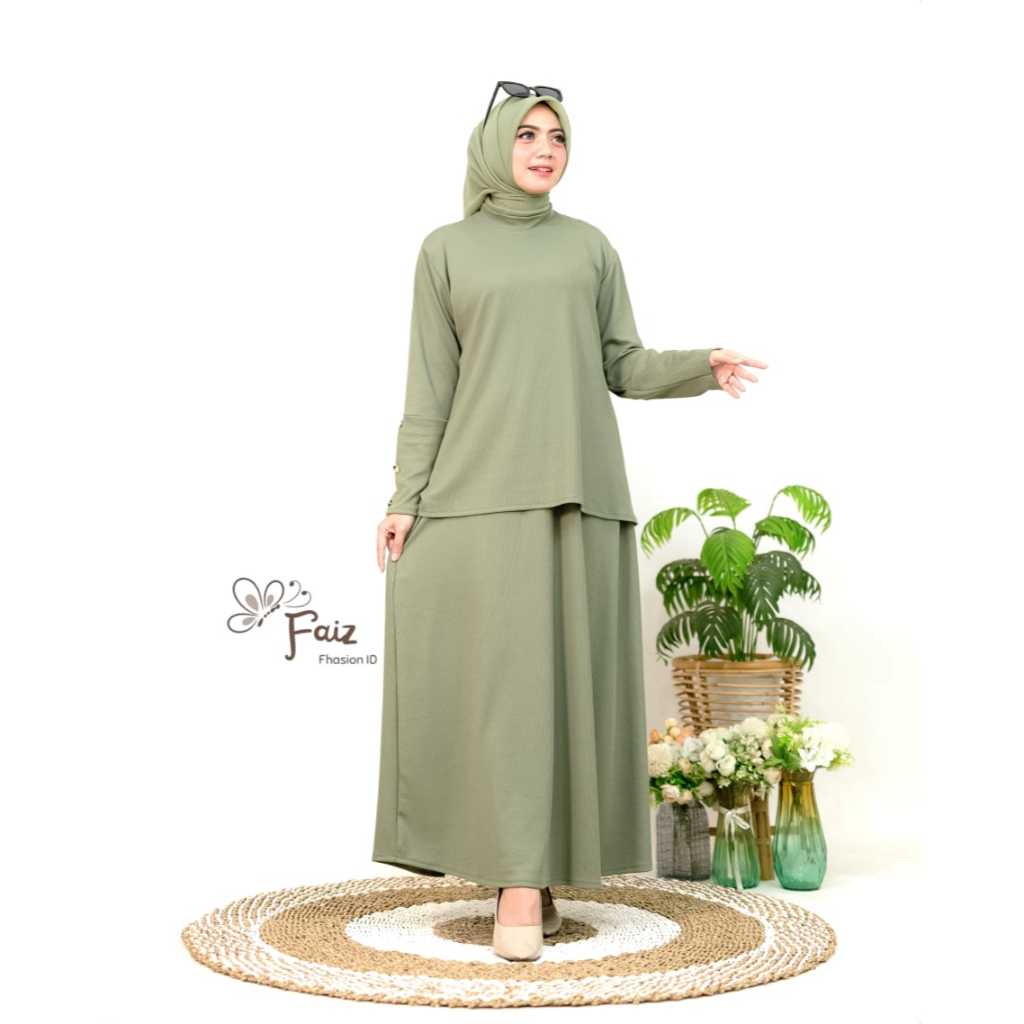 Oneset Rok Syira Bahan Batwing Button Knit - Setelan Casual Simple Syar'i