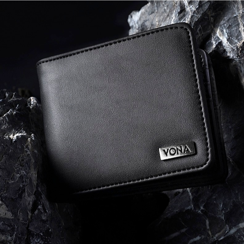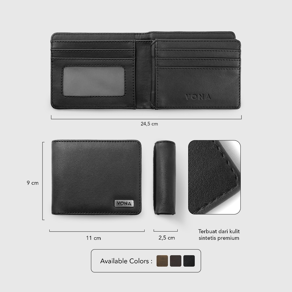 VONA Loxley Wallet - Dompet Pria Lipat Pendek 3 Ruang Extra Slot Kartu Kulit PU Polos
