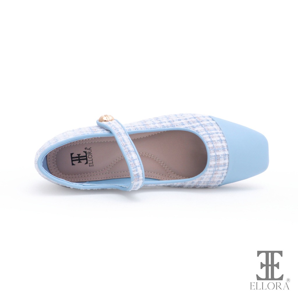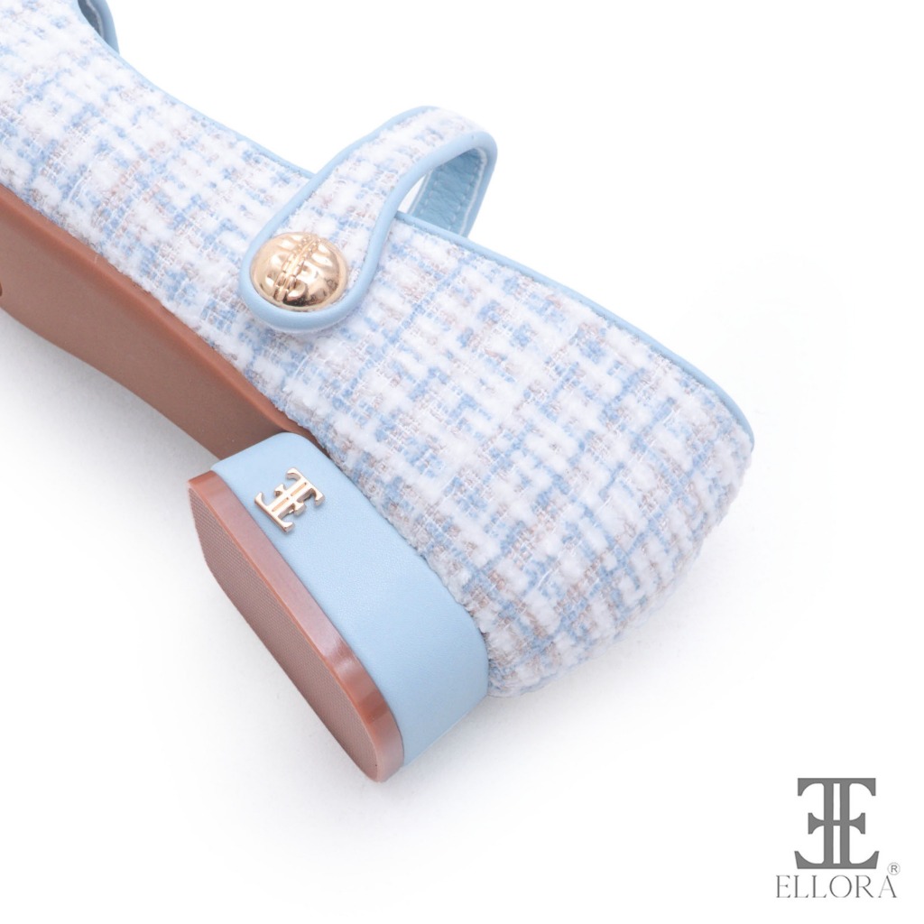 Sepatu Hak Wanita Ellora Eg-3245 Hak Chunky Heels 2.5Cm Bahan Tweed