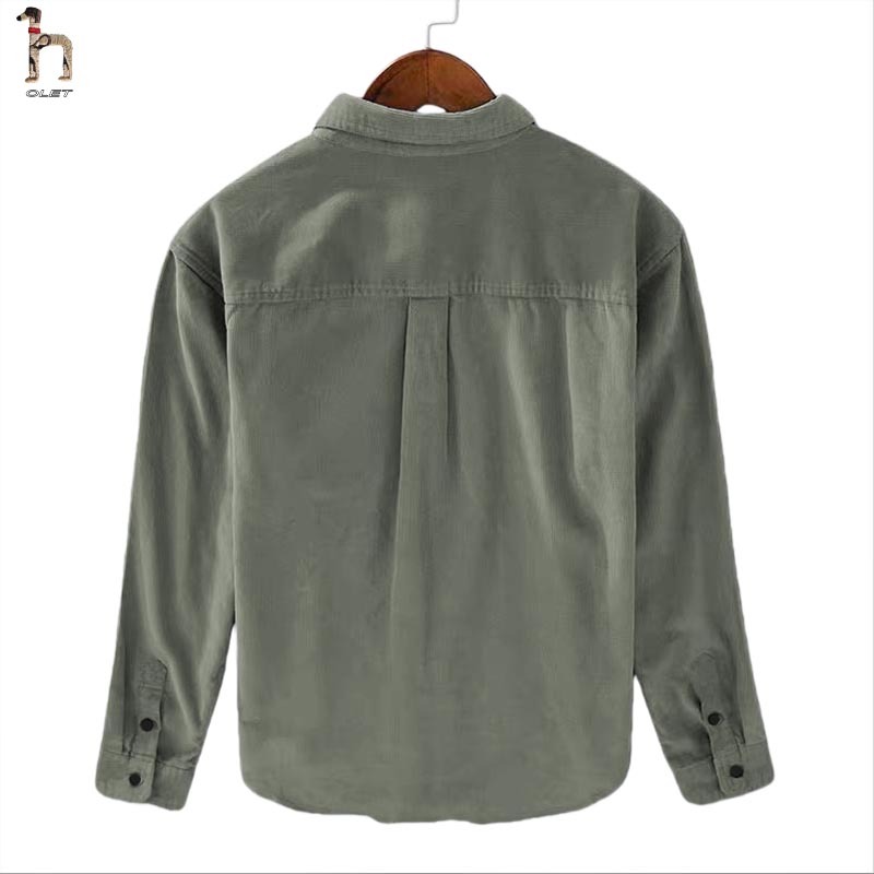 OLET Kemeja Corduroy Lengan Panjang Kasual Pria , Model Terlaris, Ukuran M-3XL, Kemeja Pria Berkerah, Desain Elegan dan
