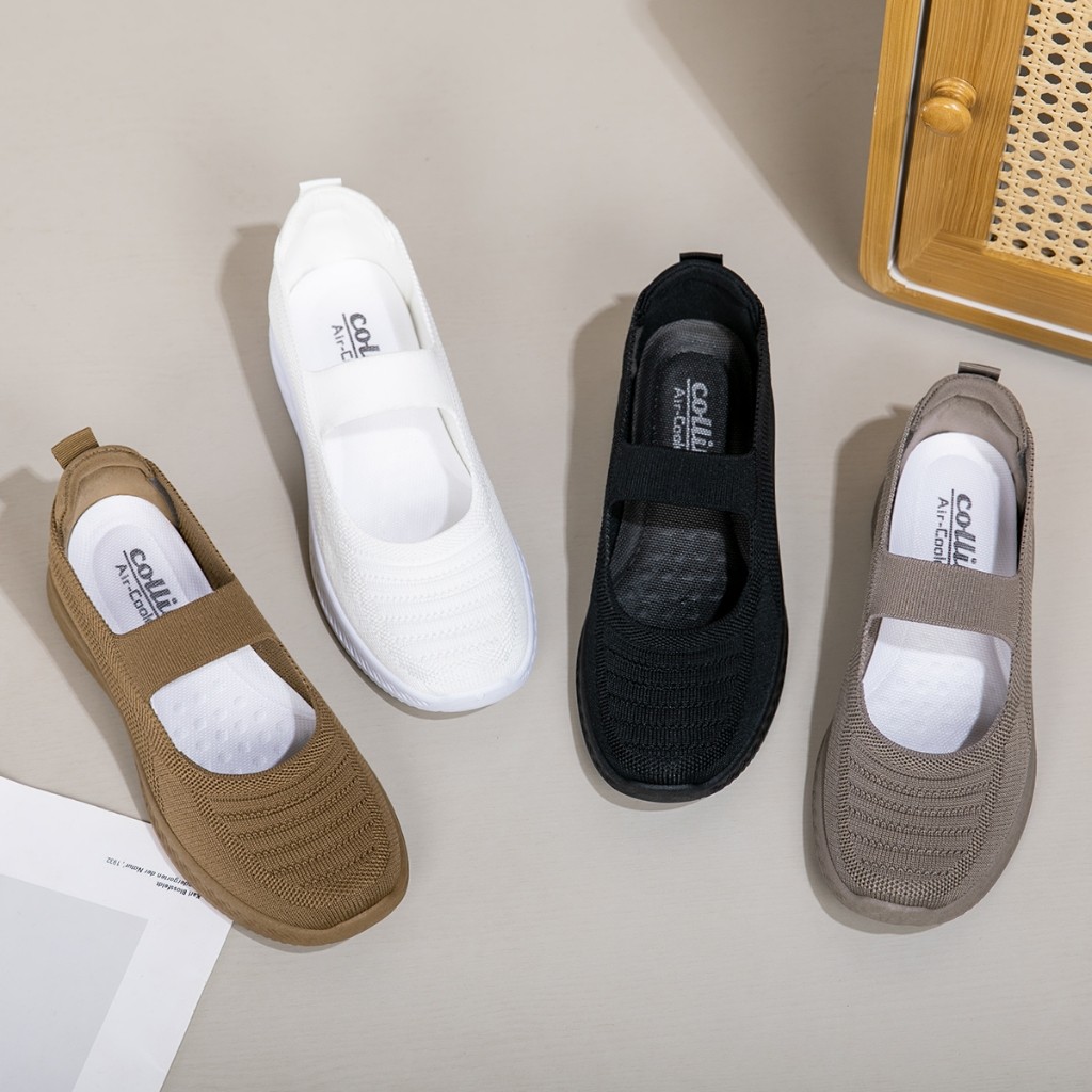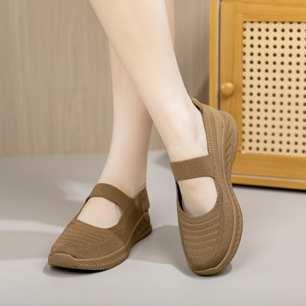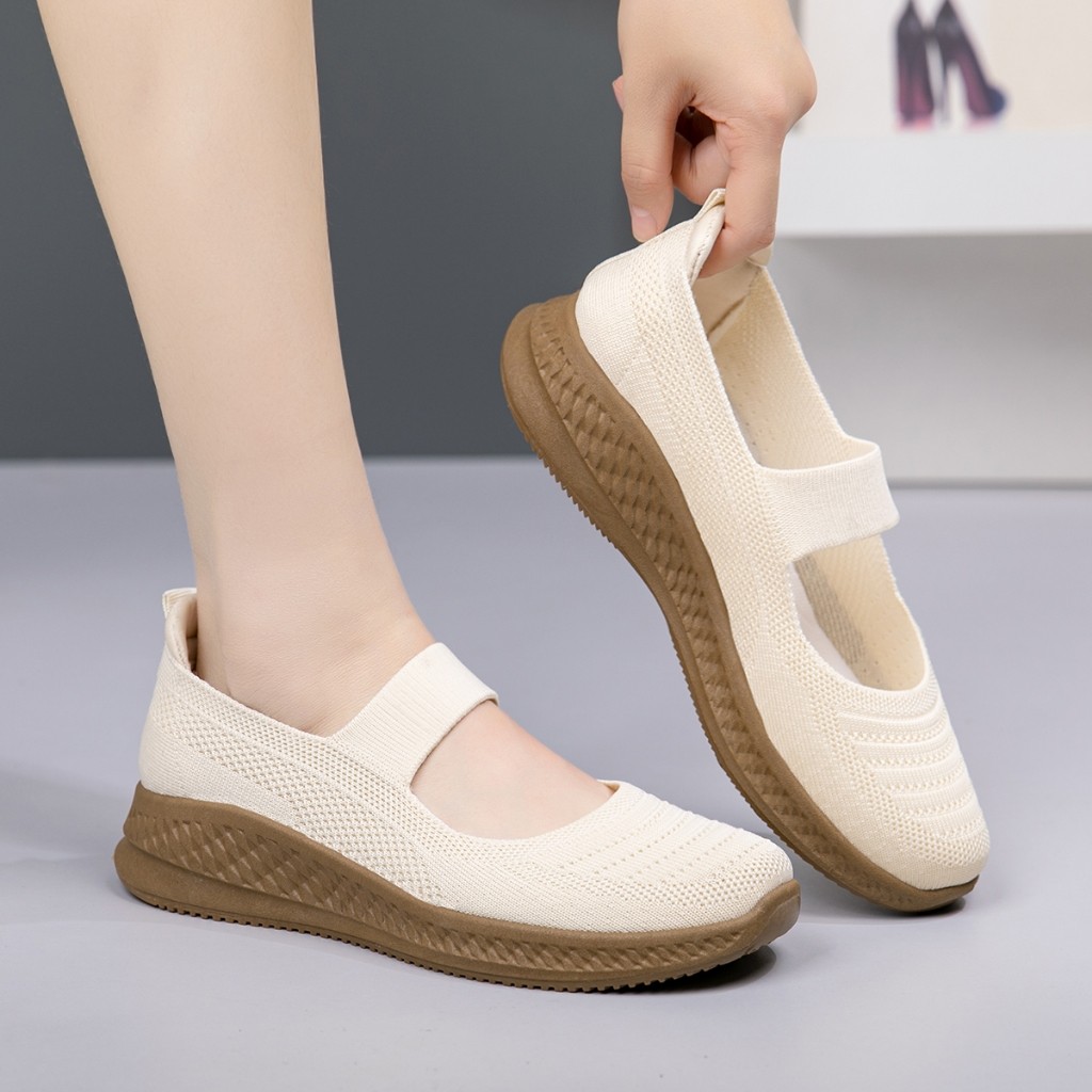 COLLIN Sepatu Flat Wanita Mary Jane Knit Sol Tebal Korean Comfort Shoes Kuliah Kerja OL811/OL811-H