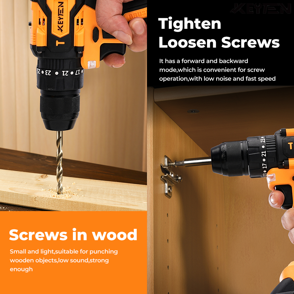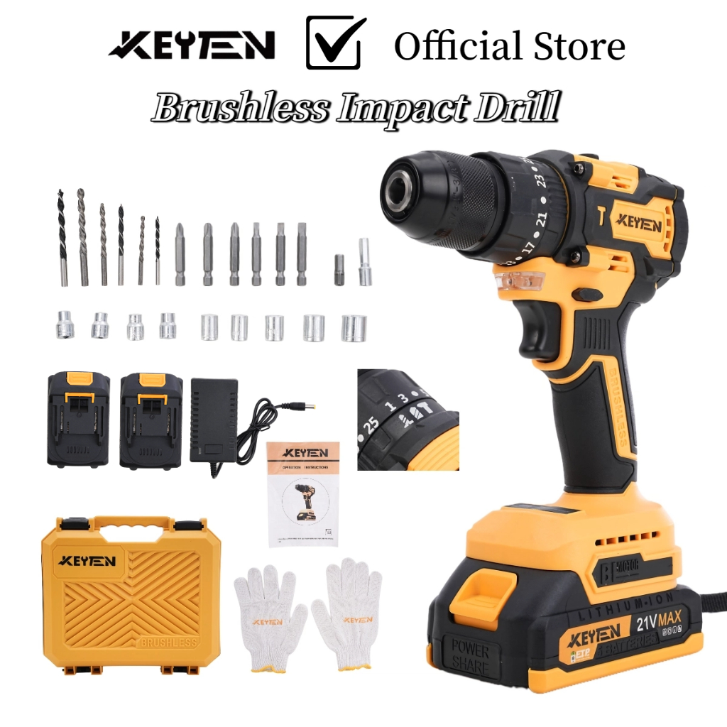 KEYTEN Bor Dampak Nirkabel Set Brushless Cordless Impact Drill Bor Baterai Alat Listrik Sekrup Nirkabel