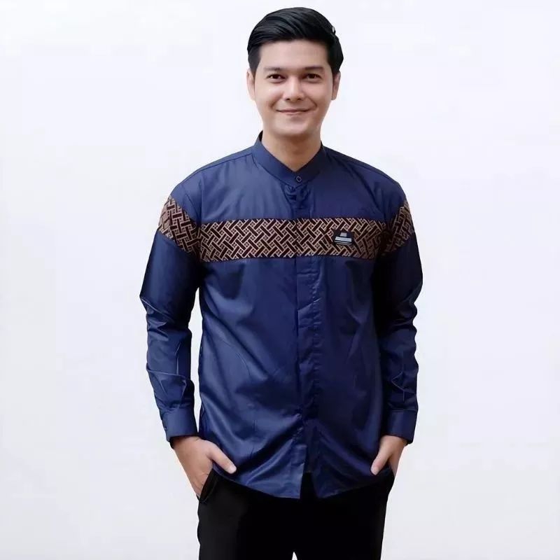Baju Koko Pria Dewasa Lengan Panjang Motif Kobata Qynang Kombinasi Batik Terbaru