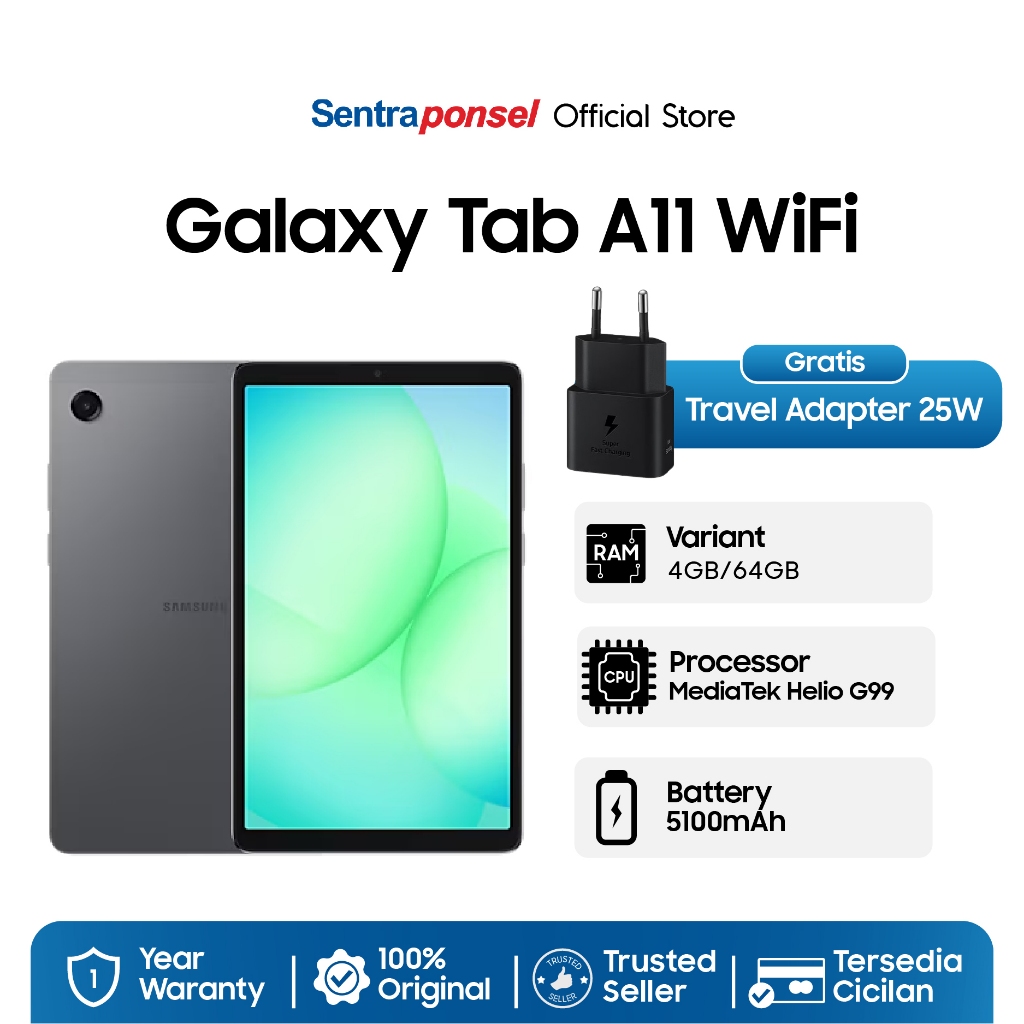Galaxy Tab A11 WIFI 4GB/64GB Gratis Travel Adapter 25W - Garansi Resmi