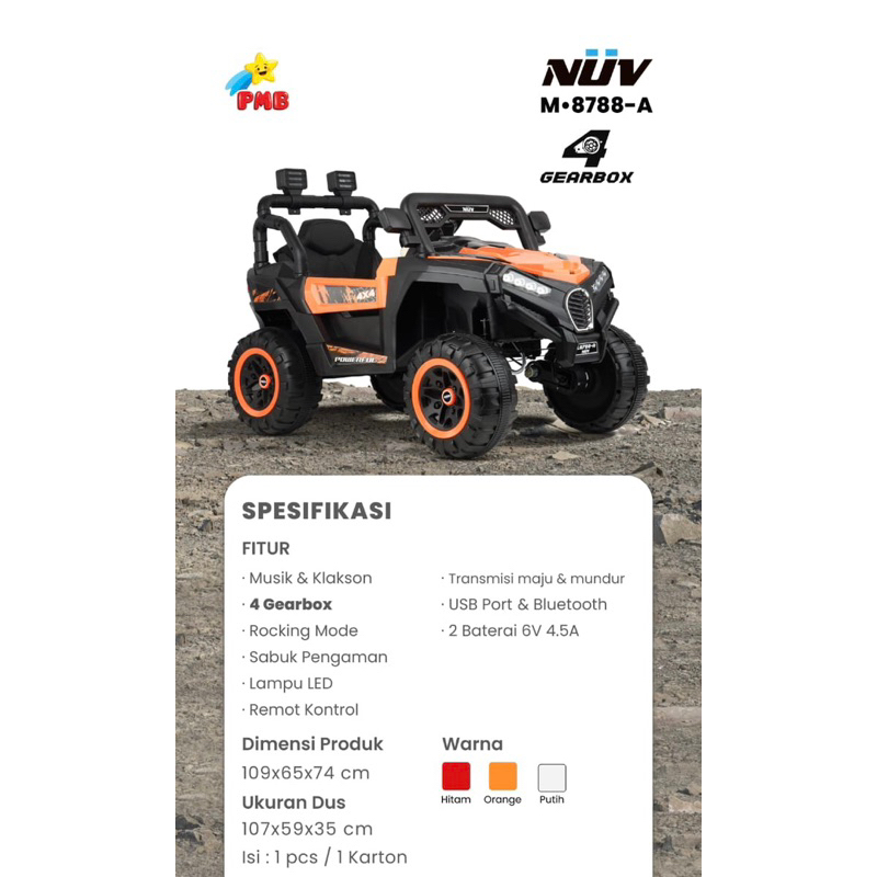 Mobil Aki Anak Jeep PMB M-8788 UTX 8788A NUV M8788 M8788AMainan Anak Mobil Remot Murah