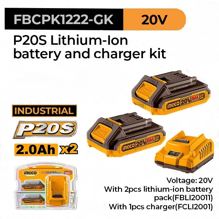 Paket Baterai P20S INGCO 2.0Ah 20V Fast Charger 2A - INGCO FBCPK1222