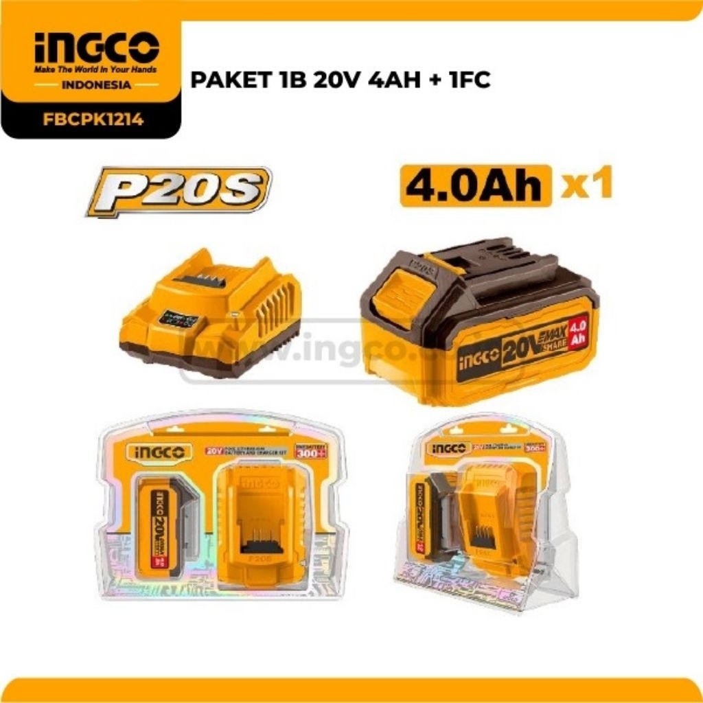 Ingco Paket Baterai 4.0Ah & Charger 20V INGCO Type FBCPK1012