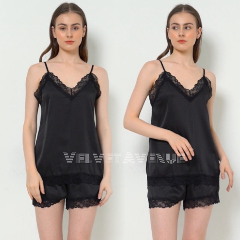 Setelan Piyama Baju Tidur Wanita Camisole Silk Satin 085 Polos Elegan Adem Silky Premium VelvetAvenu