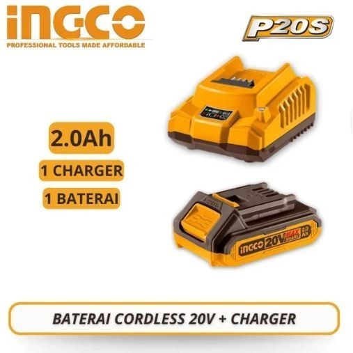 PAKET Baterai 2.0 Ah 20V FBLI20011 Fast Charger FCLI2001 Cordless INGCO 2 AH Battery P20S
