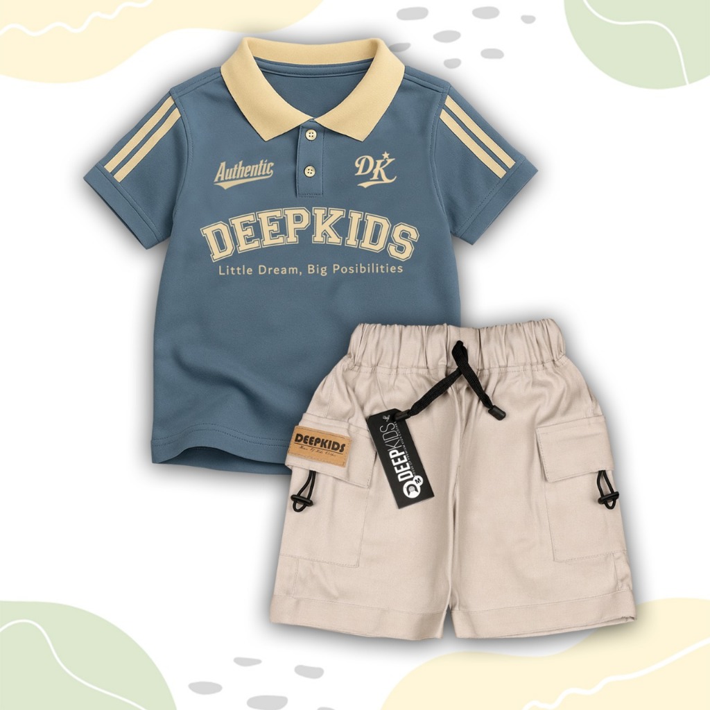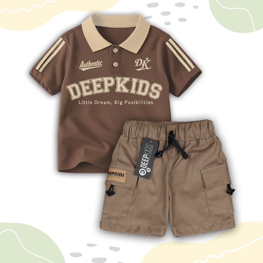 Setelan Anak Laki Laki Kaos Kerah Polo Bahan Cotton Combed 24S Dan Celana Cargo Pdk Premium Usia 112 Tahun