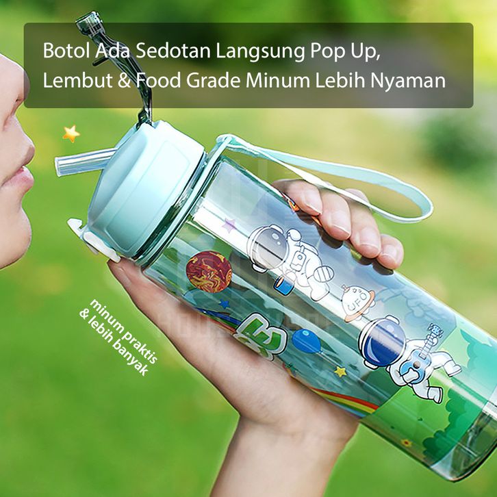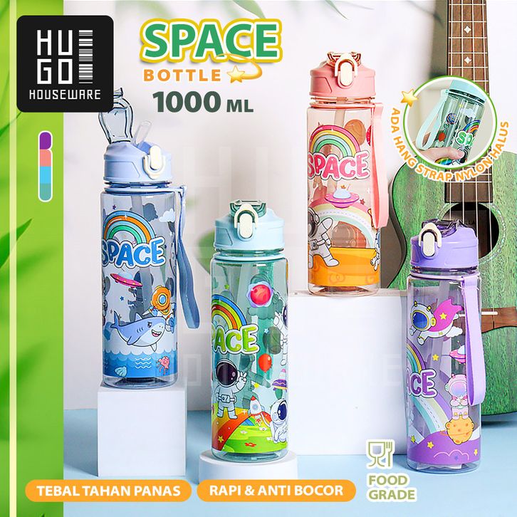 HUGO Botol Minum 1 Liter Bening Botol Air Anak Space Sedotan Anti Bocor Premium BPA FREE