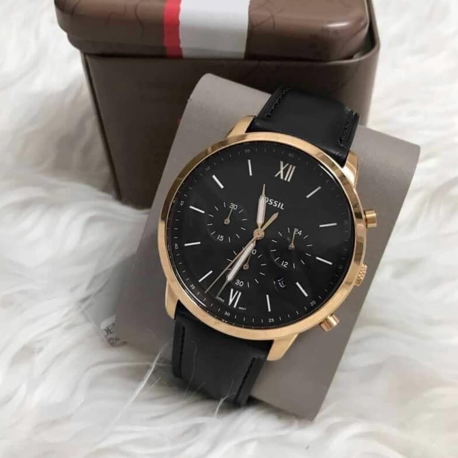 JAM TANGAN PRIA FOSSIL FS5381 / FS 5381 BLACK ROSEGOLD LEATHER FREE ONGKIR - FREE BOX