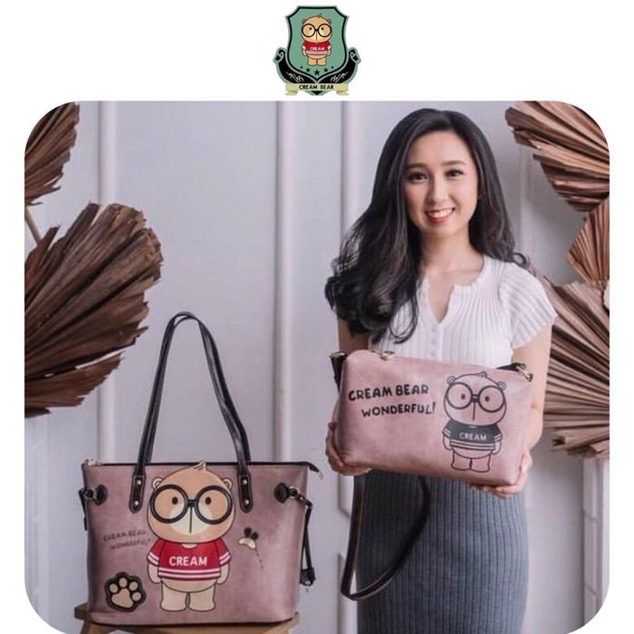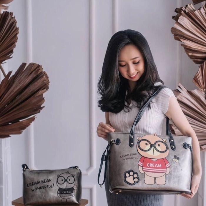 [Buy 1 Get 1]Sammao Creambear Tas Totebag kulit Wanita original C10351 - C10354