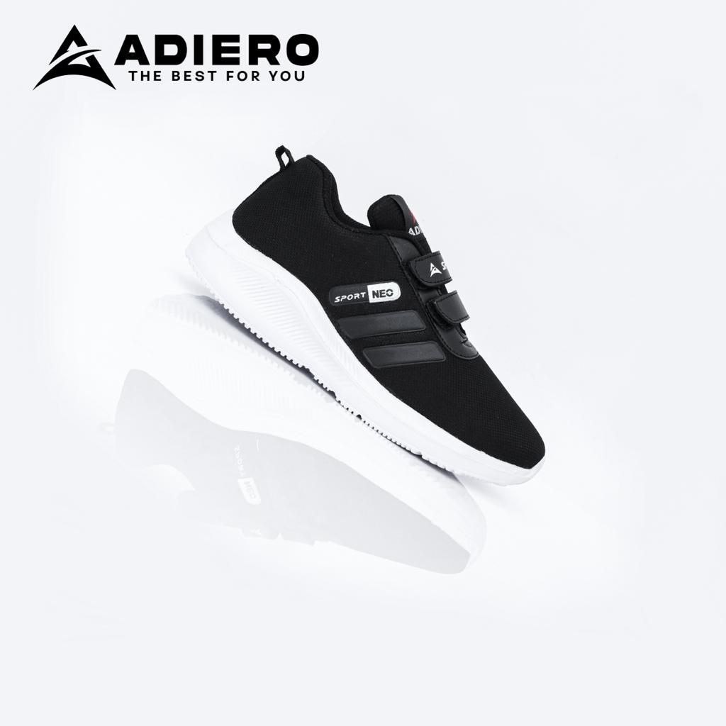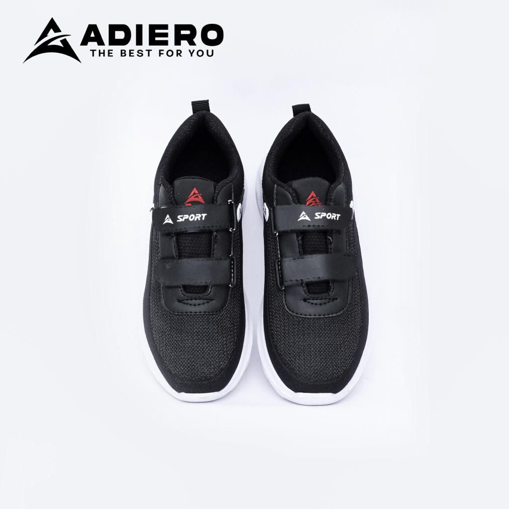 Adiero Sepatu Sekolah Anak Laki & Perempuan Sneakers Velcro Original Warna Hitam Putih size 28 - 40