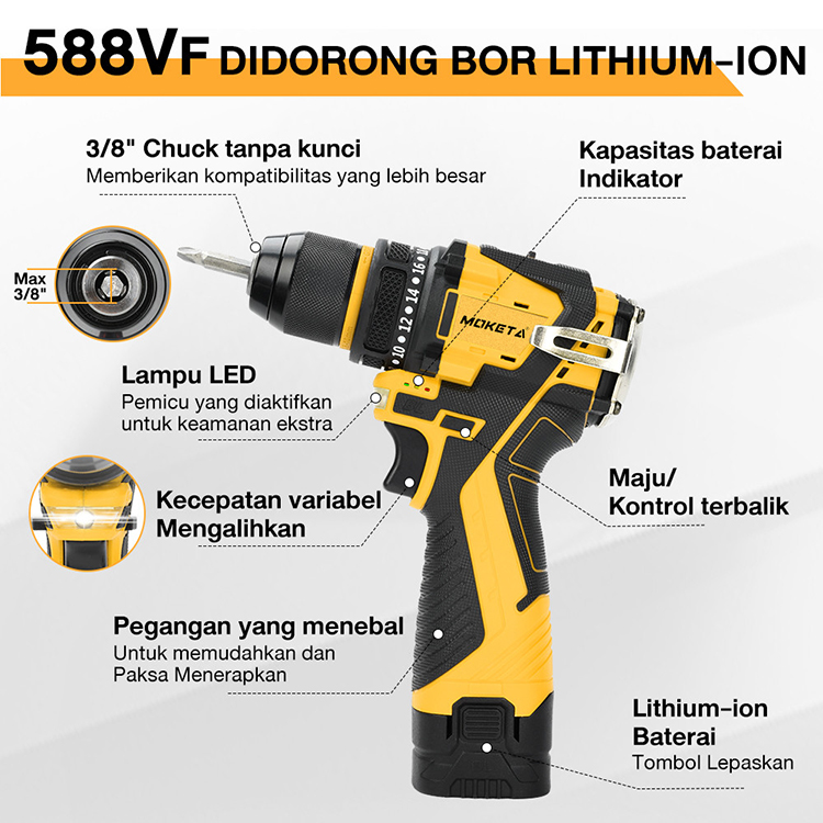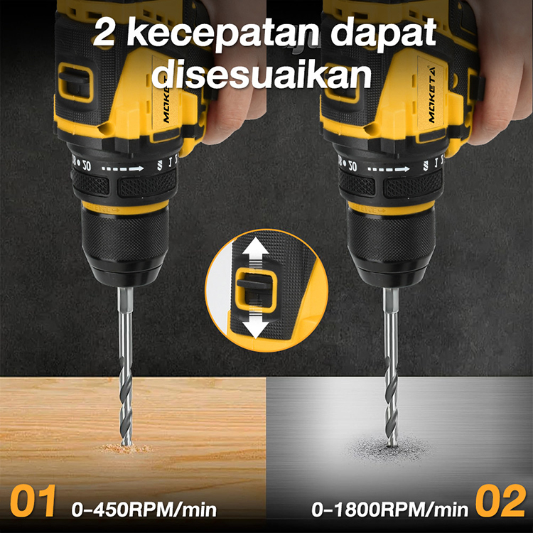 MOKETA 18V Brushless Cordless Drill Rechargeable 10MM Mesin Bor Baterai Screwdriver Hand Drill Power Tools Cordless Mesi