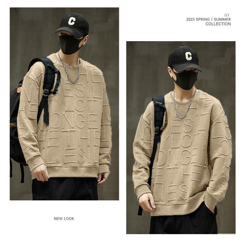 Amspro Kaos Oversize Pria Embos Baju Pria Lengan Panjang Atasan Pria Kaos Deris Knitwear