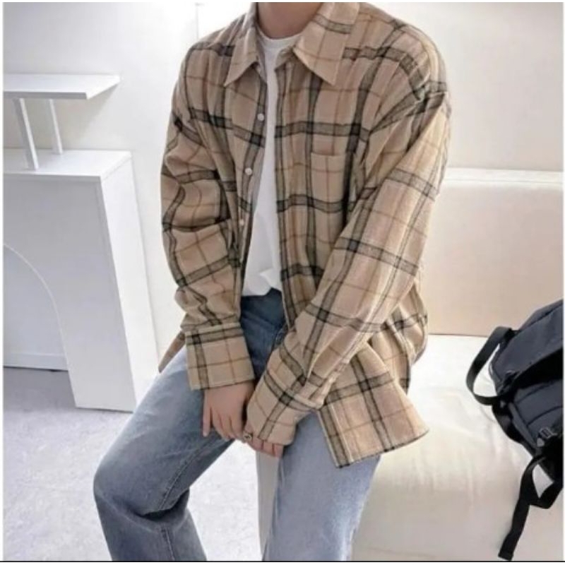 Kemeja Flanel Pria Lengan Panjang Motif Kotak Kotak Bahan Flanel Halus Kwalitas Premium
