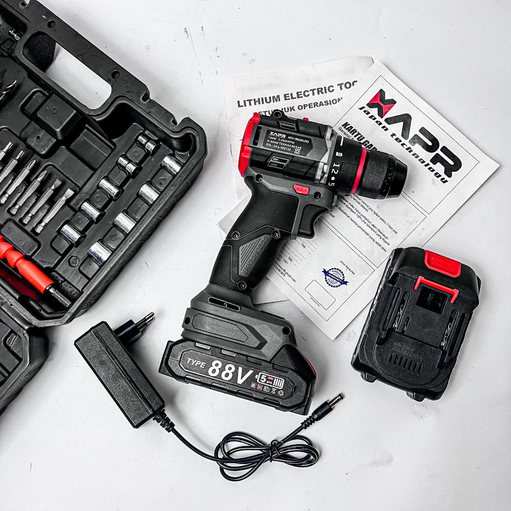 APR RAJA BOR impact drill BRUSHLESS TYPE AP85+10mm keyless auto lock 2baterai lxt 88v mesin bor besi kayu driver sekrup