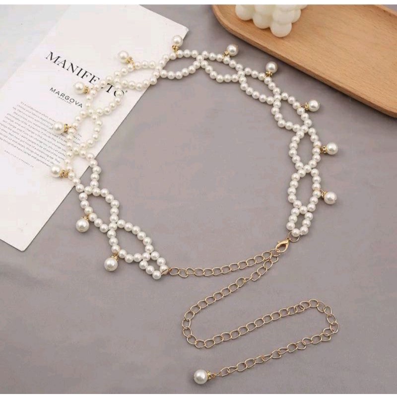 Ikat Pinggang Wanita Rantai Mutiara Untuk Dress Dan Aksesoris