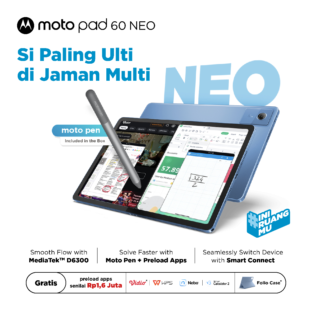 Motorola Moto Pad 60 NEO - 4GB/128GB - MediaTek D6300 - 11 inch - 2.5K Ultra Clear 90Hz - with Dolby Atmos - 7040mAh