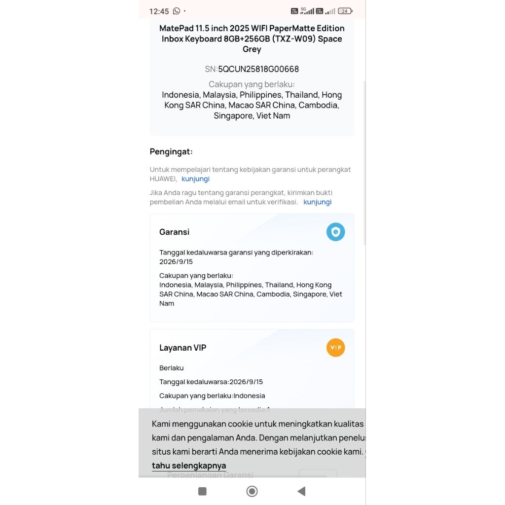 Huawei matepad 11.5 2025 8/256 fullset garansi panjang second