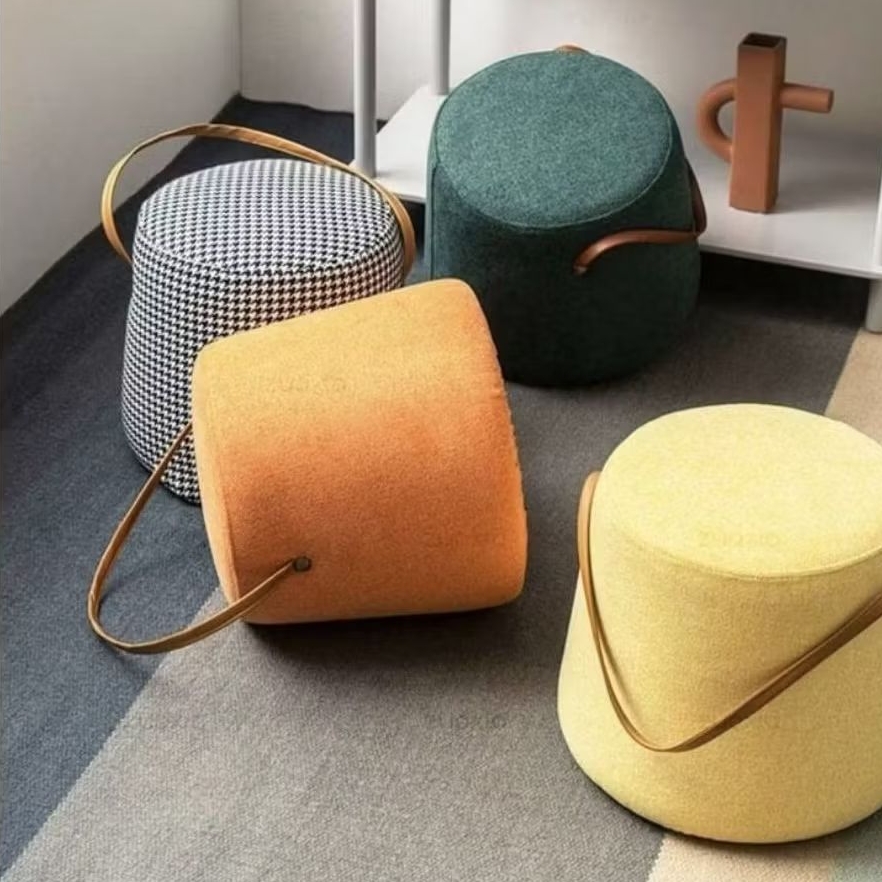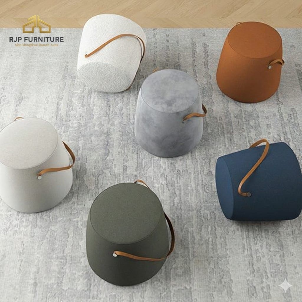 RJP FURNITURE Stool Pouf Ottoman Scandinavian Minimalis ern Kursi Kecil Bulat Multifungsi dengan Dengan Tambahan Handle