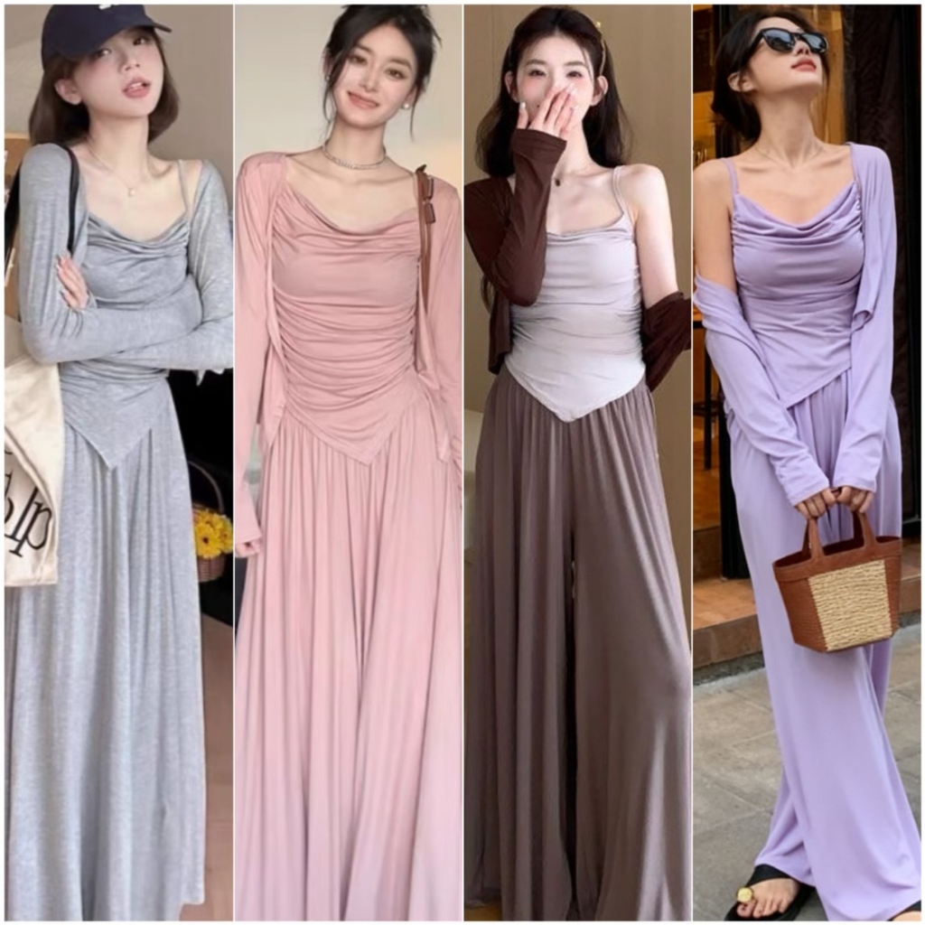 Setelan Wanita Trendy Elegan - Tanktop + Kardigan + Celana Kulot, Nyaman & Stylish M623