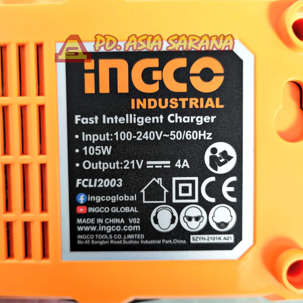 Rapid Fast Charger 4A Battery 20v INGCO FCLI2003 Baterai Cordless P20S
