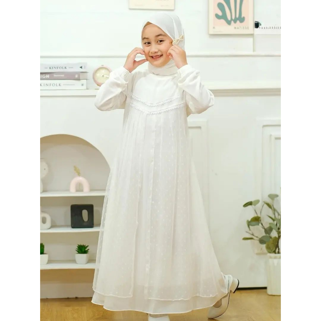 Gamis Putih Set Hijab Pasmina Nabila Kids Untuk Anak Usia 4-12 Tahun Gamis Lebaran 2026