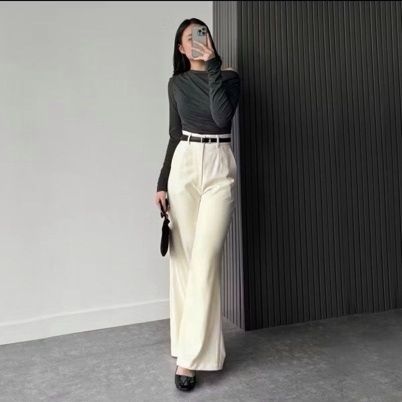 Celana Panjang Korea Style Flare Pants Highwaist Casual Trouser Bahan Katun Premium Zs Etta