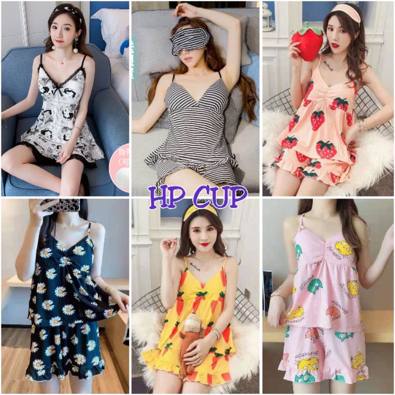 [ RedPink ] Stelan Homewear Musim Panas Wanita Dewasa Modern Korean Looks Fit Tanktop With Busa Pad Thick Strap Pundak A