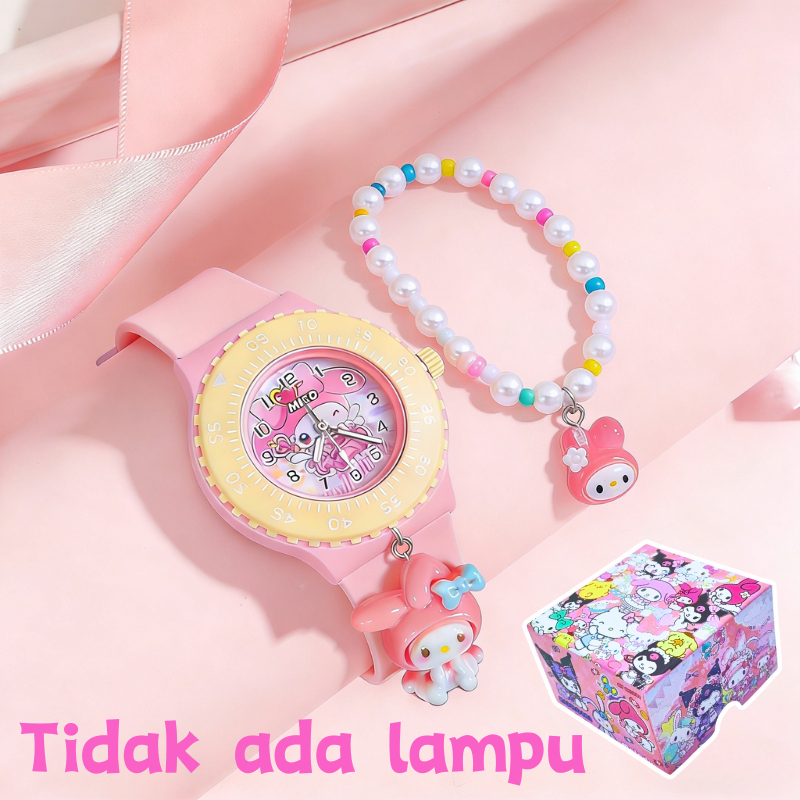 Jam Tangan Anak Perempuan Set Gelang Fashion Baru Warna Led Bercahaya Kartun Gadis Berkilau