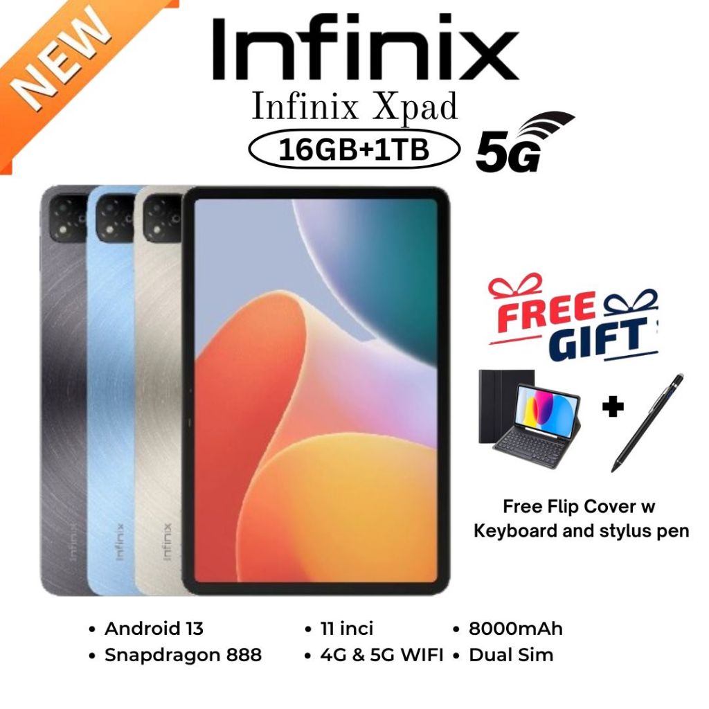 New Arrival Asli Infinix XPAD Tablet 4G LTE / 5G SIM + WiFi | 16GB RAM + 1TB ROM |Snapdragon 888 | Android 13