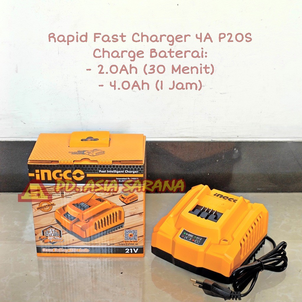 PAKET Baterai 4Ah FBLI2002 Rapid Fast Charger FCLI20411 INGCO 4.0 P20S