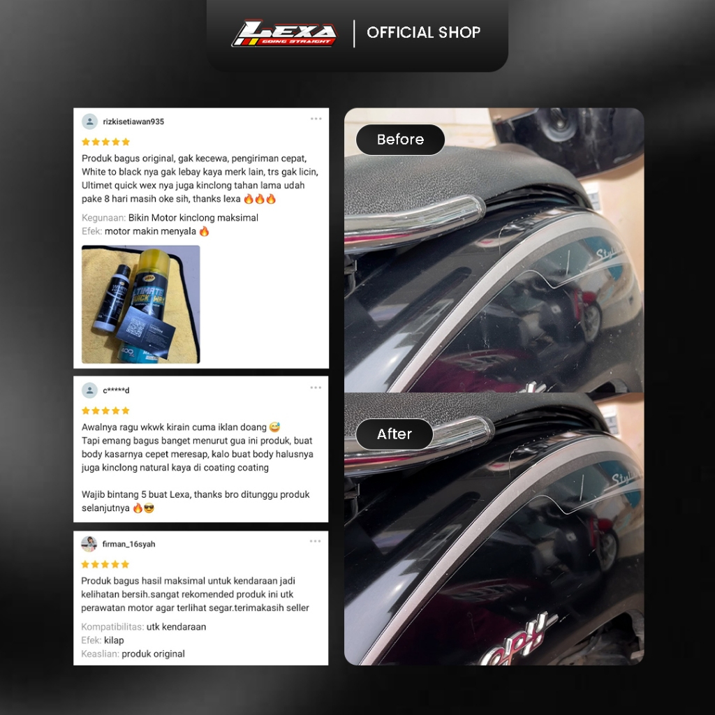 Pengkilap & Penghitam Body Motor Mobil – LEXA Paket Glowing Body Glossy Doff Kilap Anti Kusam