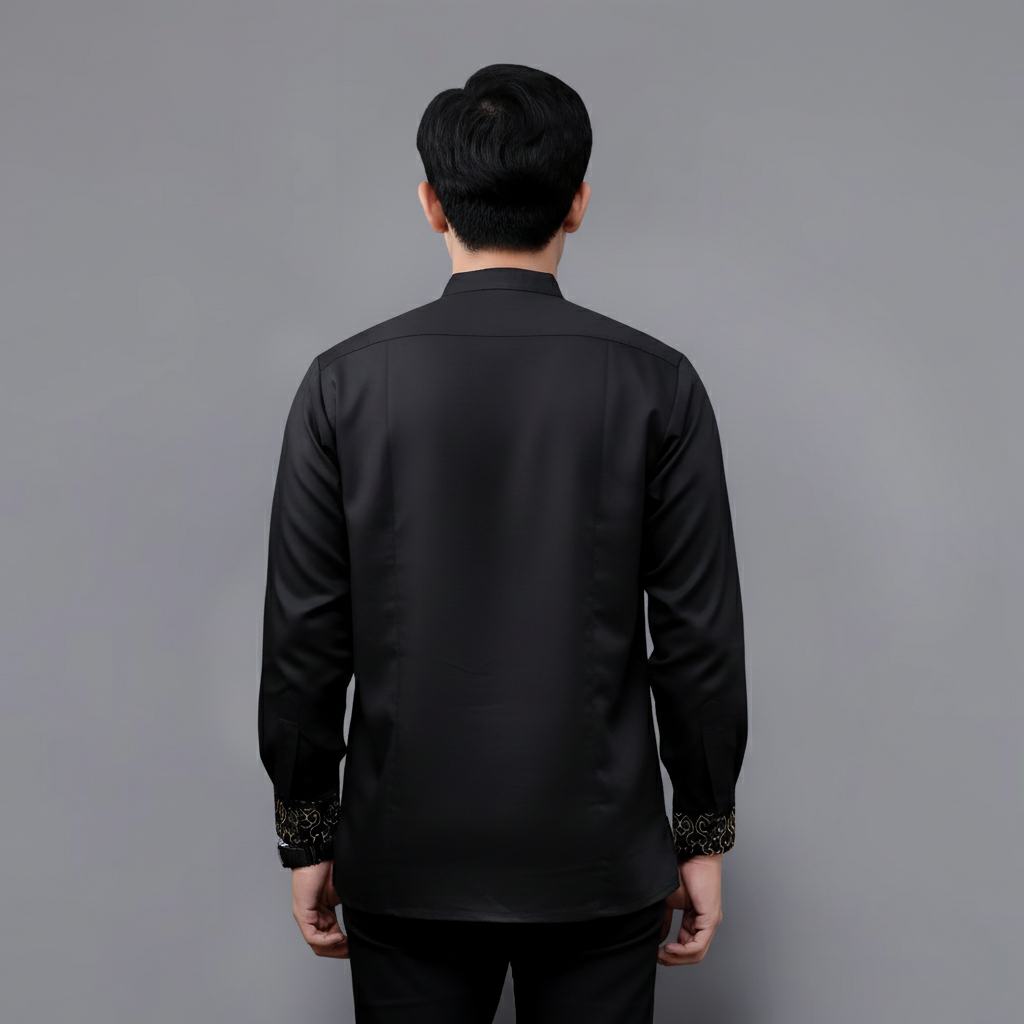 Baju Koko Pria Dewasa El Rumi Kombinasi Batik Motif Jarilist Terbaru Warna Hitam