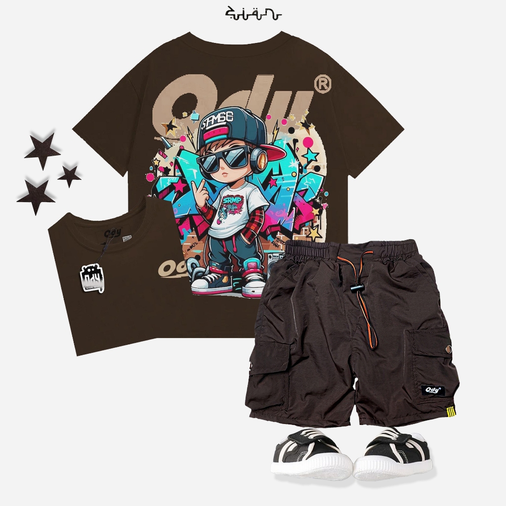 Setelan Anak Laki Laki Baju Distro Sablon Depan Belakang Dan Celana Cargo Pendek Usia 3 12 Tahun Zian