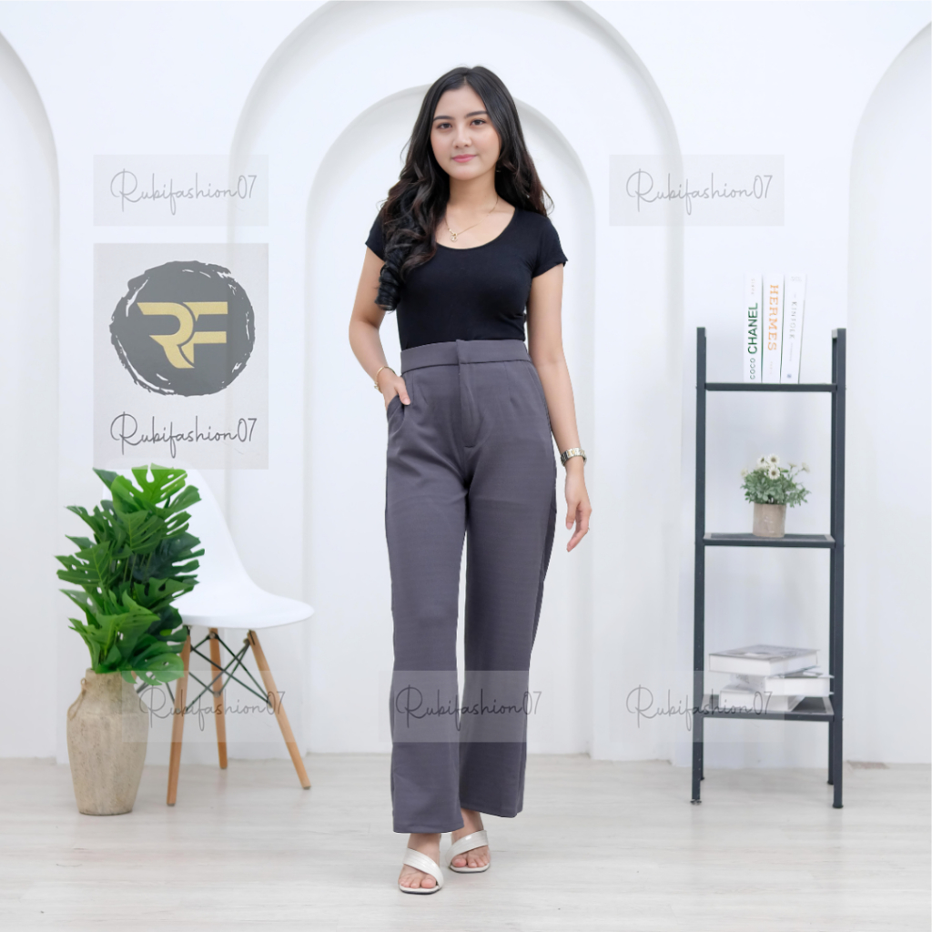 Celana Kulot Cozie Loose Pants Higwais Cullot Pants Rib Knit Premium