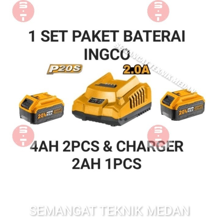 PAKET SET FCLI2001 CHARGER BATERAI BATTERY 20V 2PCS FBLI2002 4AH INGCO