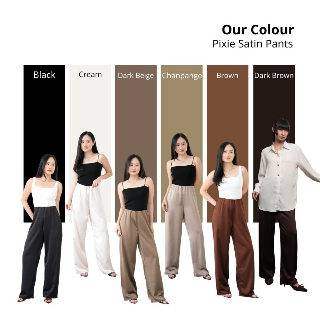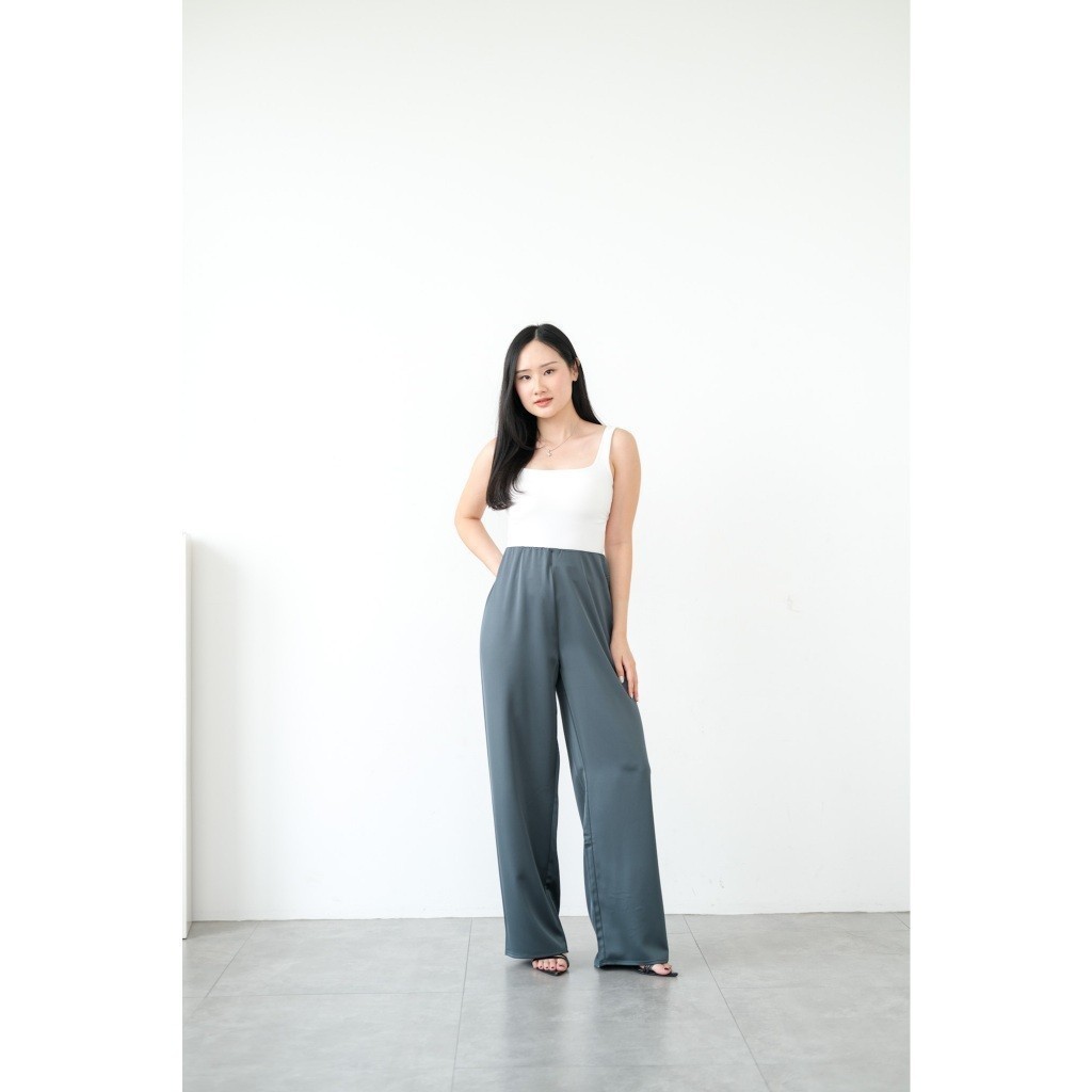 Celana Satin Pants Wanita Pixie Premium Tailored Satin Straight Pants Jenn & Rose