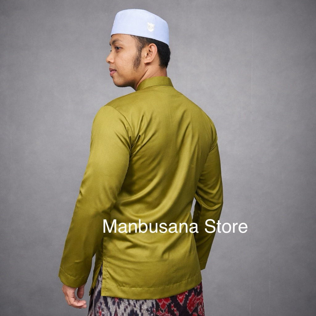 Baju Koko Almahi Saku Depan Bawah Kerah Sanghai Muslim Pria Dewasa