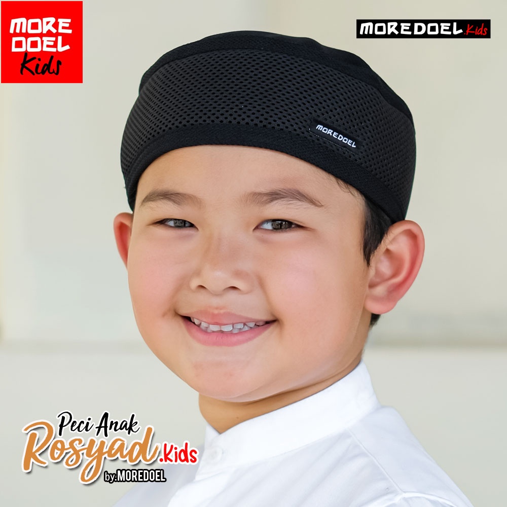 MoredoelKids - Kopiah Peci Anak Laki Laki Warna Hitam Type Rosyad Mewah dan Elegant untuk Sekolah dan Mengaji