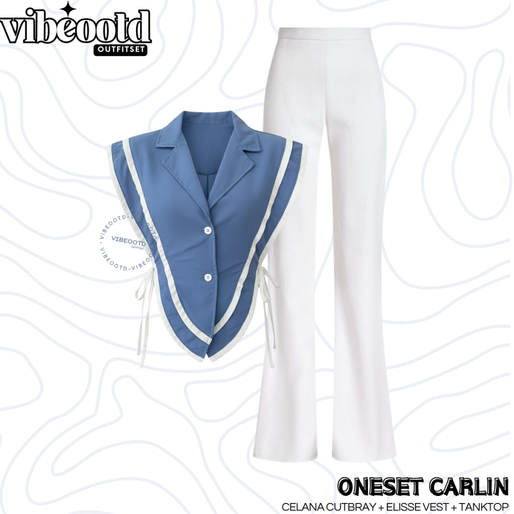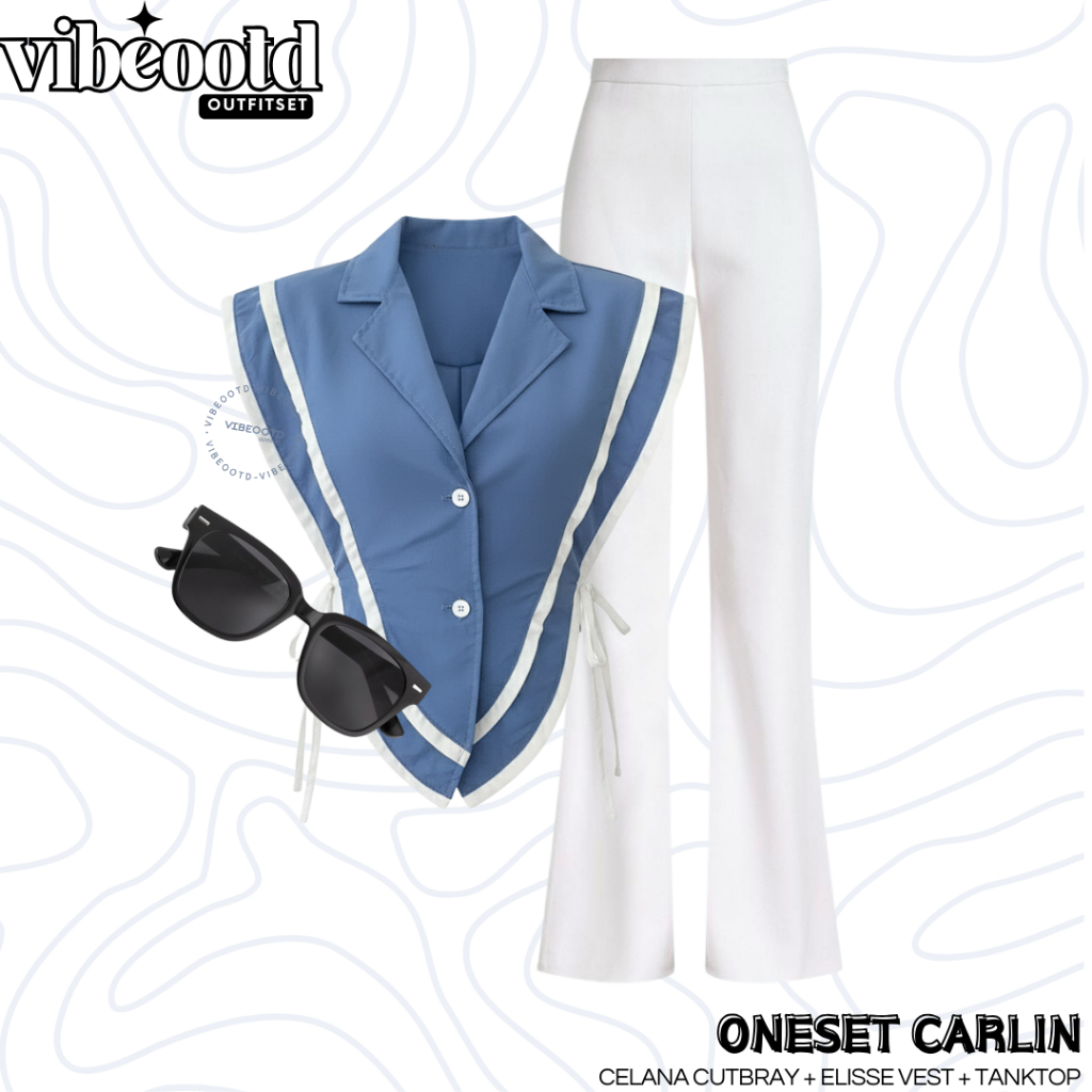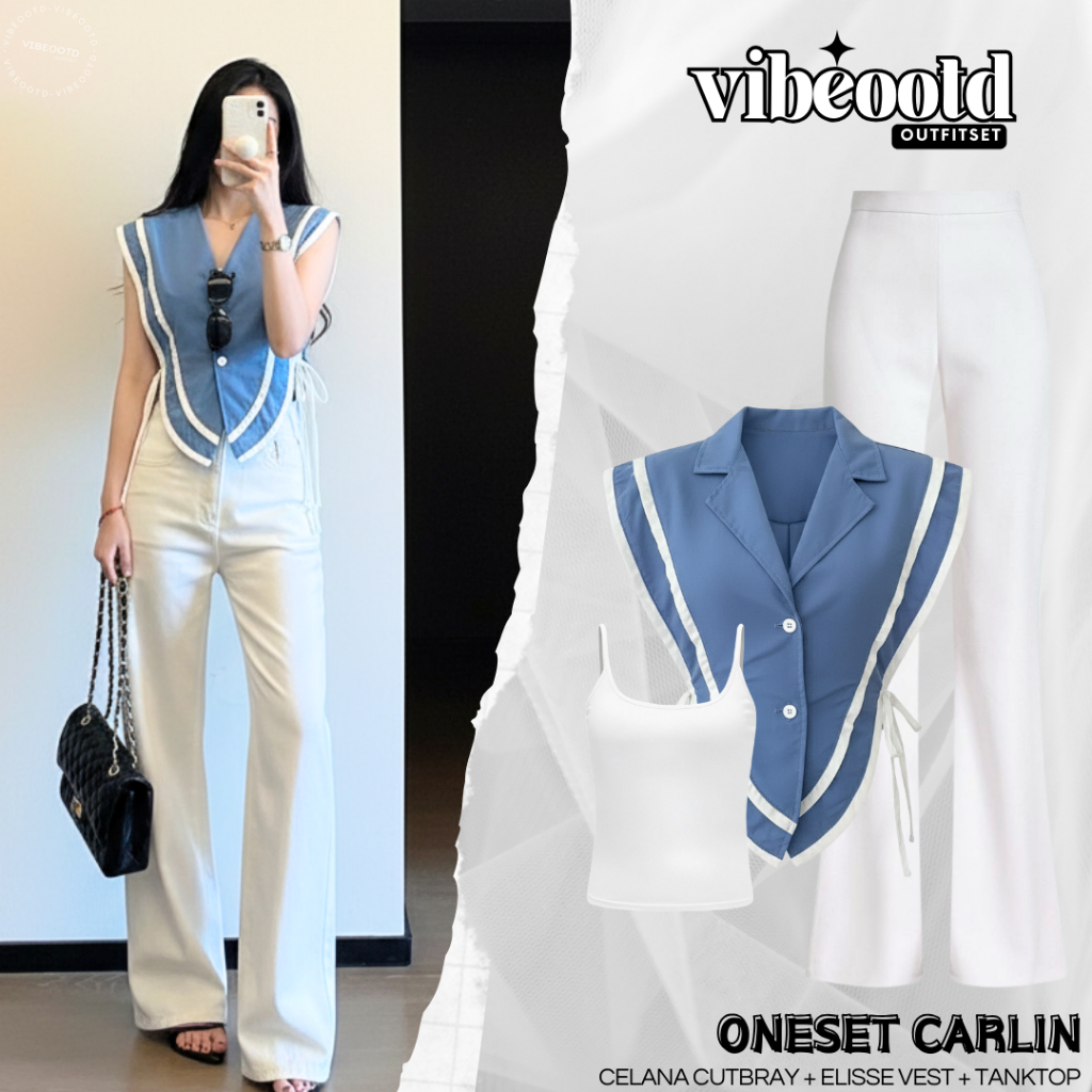 Carlin Outfit Set Wanita ( Celana Cutbray + Ellise Vest + Tanktop + Kaca Mata ) Ootd Koreans Hangout