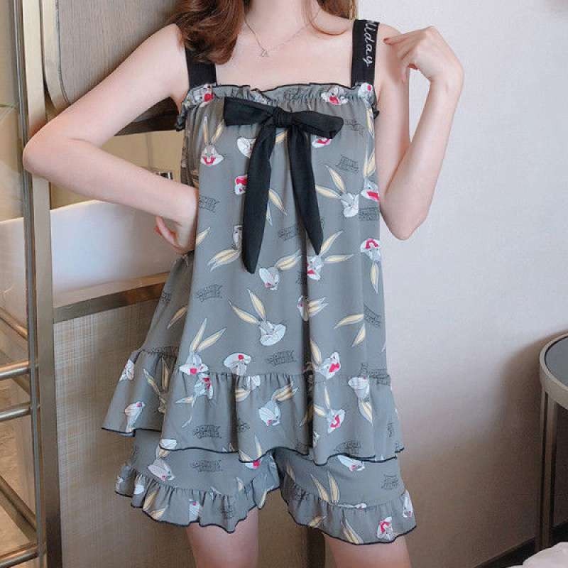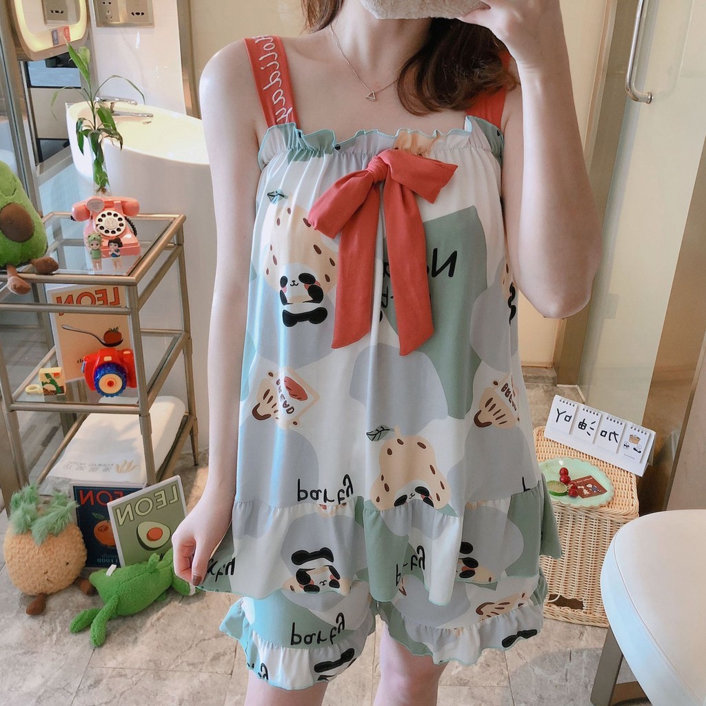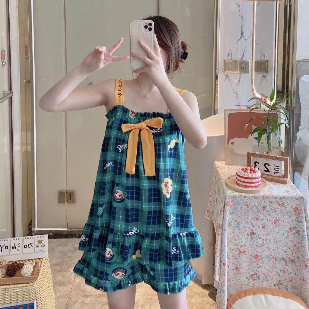 GGS Baju Tidur Wanita Baby Doll Set Piyama Perempuan Remaja Dewasa Setelan Baju Tanpa Lengan Celana Pendek Korea Fashion
