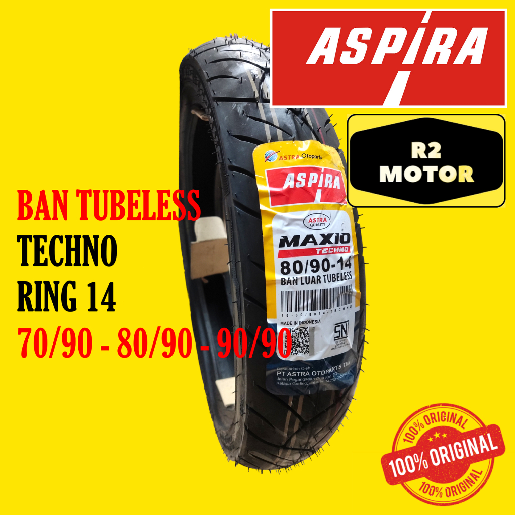 ASPIRA BAN LUAR TUBELESS 70/90 80/90 90/90 RING 14 MAXIO TECHNO BEAT VARIO SCOOPY MIO ORIGINAL BARU